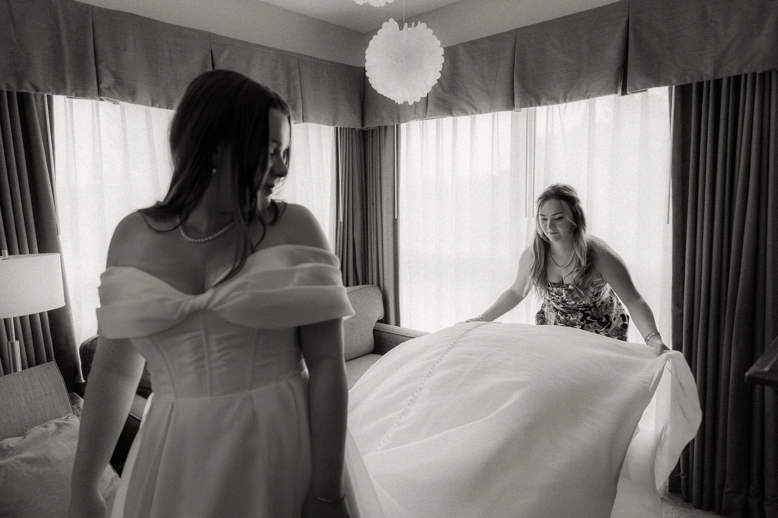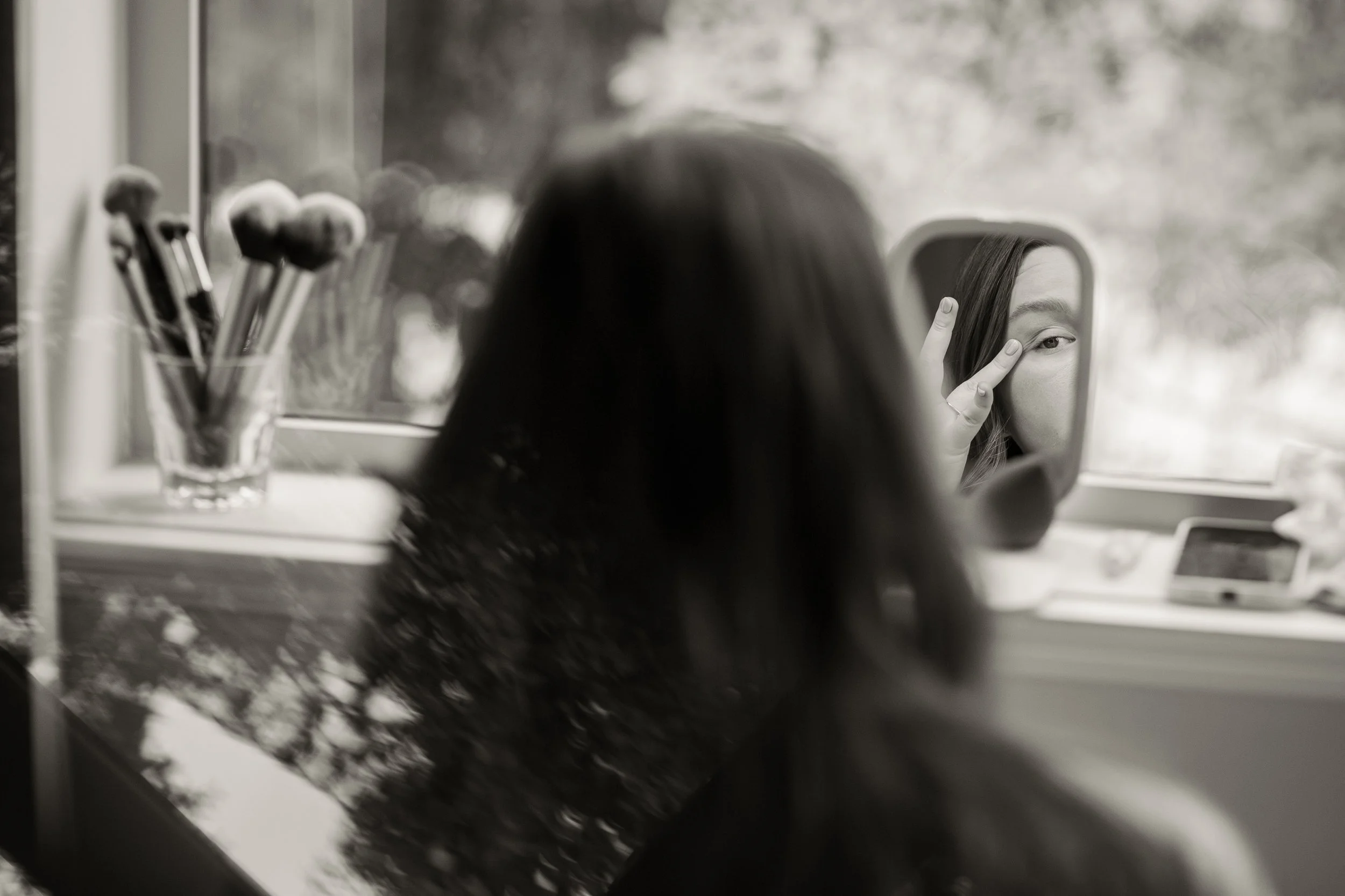 The morning began in the soft, elegant beauty of the Old House Hotel, where Lauren prepared for the day ahead with her mom and sister. Surrounded by lush greenery and the gentle flow of the nearby river, the setting felt calm, refined, and deeply grounding. Natural light poured through the windows, catching on the delicate details as the girls did their hair and makeup. It was an unhurried, peaceful start to the day.