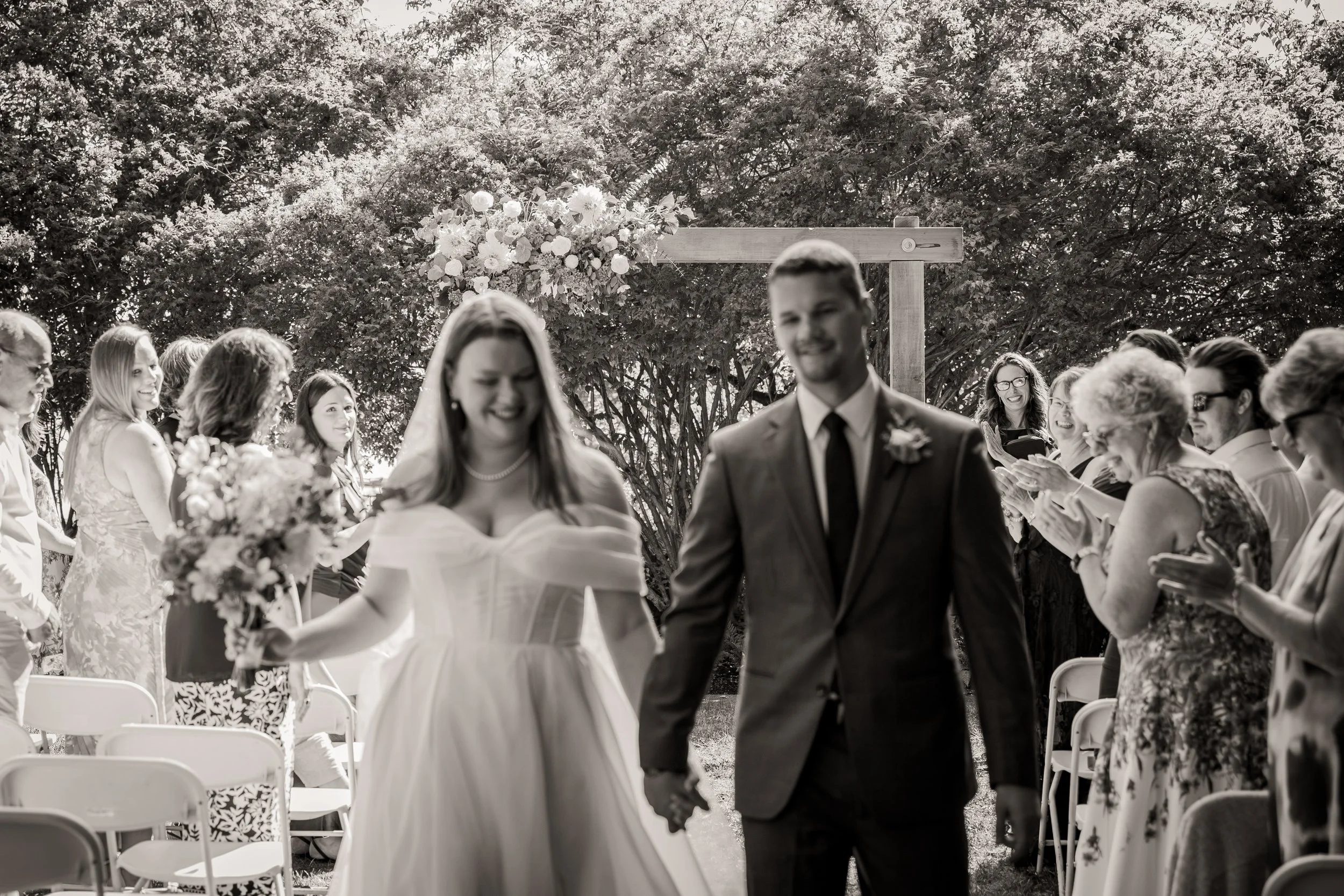 The ceremony took place outdoors, surrounded by the natural beauty of the grounds. The ocean air moved gently through the trees as Lauren and Joshua prepared to walk down the aisle. With a smaller guest list, every word landed a little deeper, every glance held a little longer.