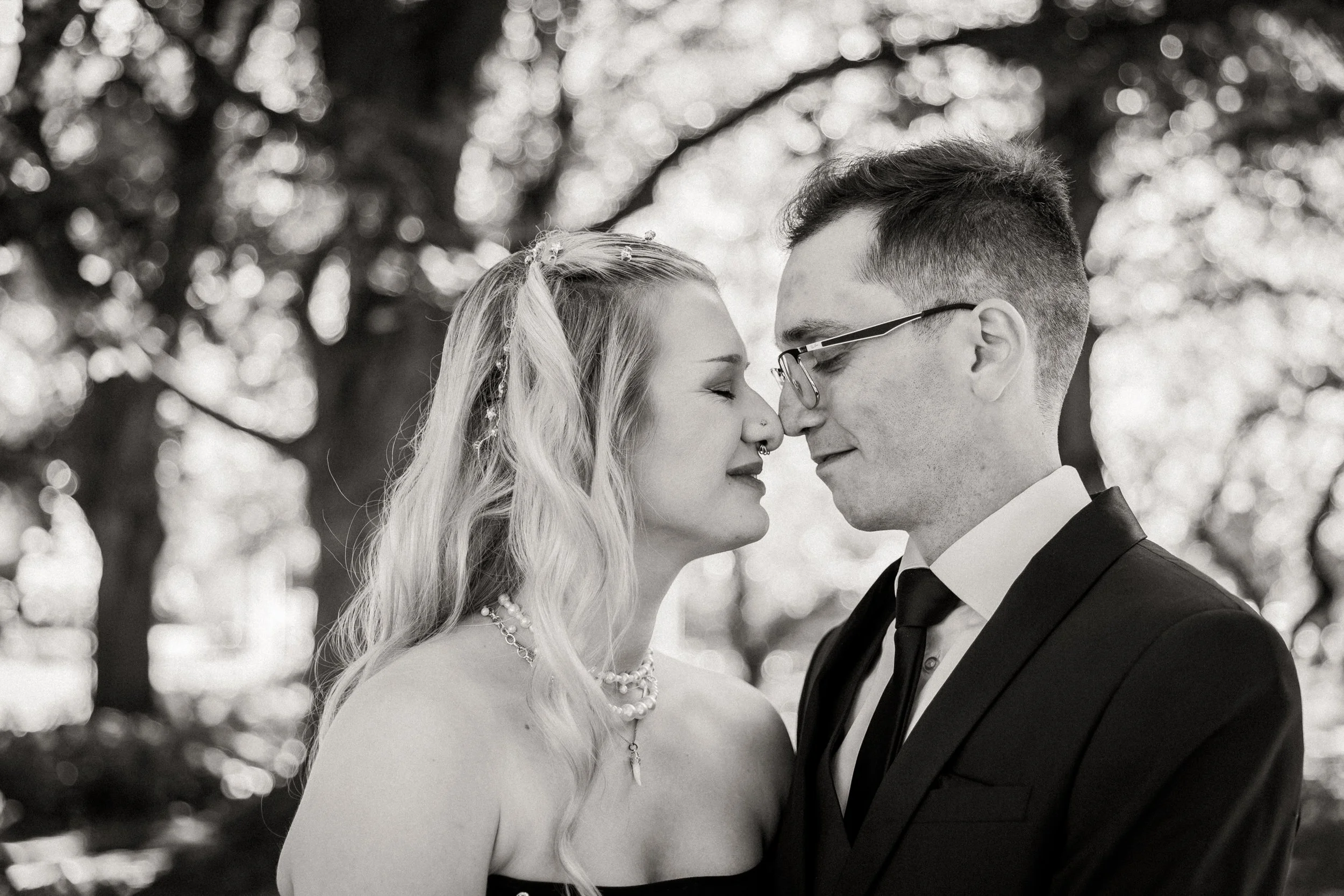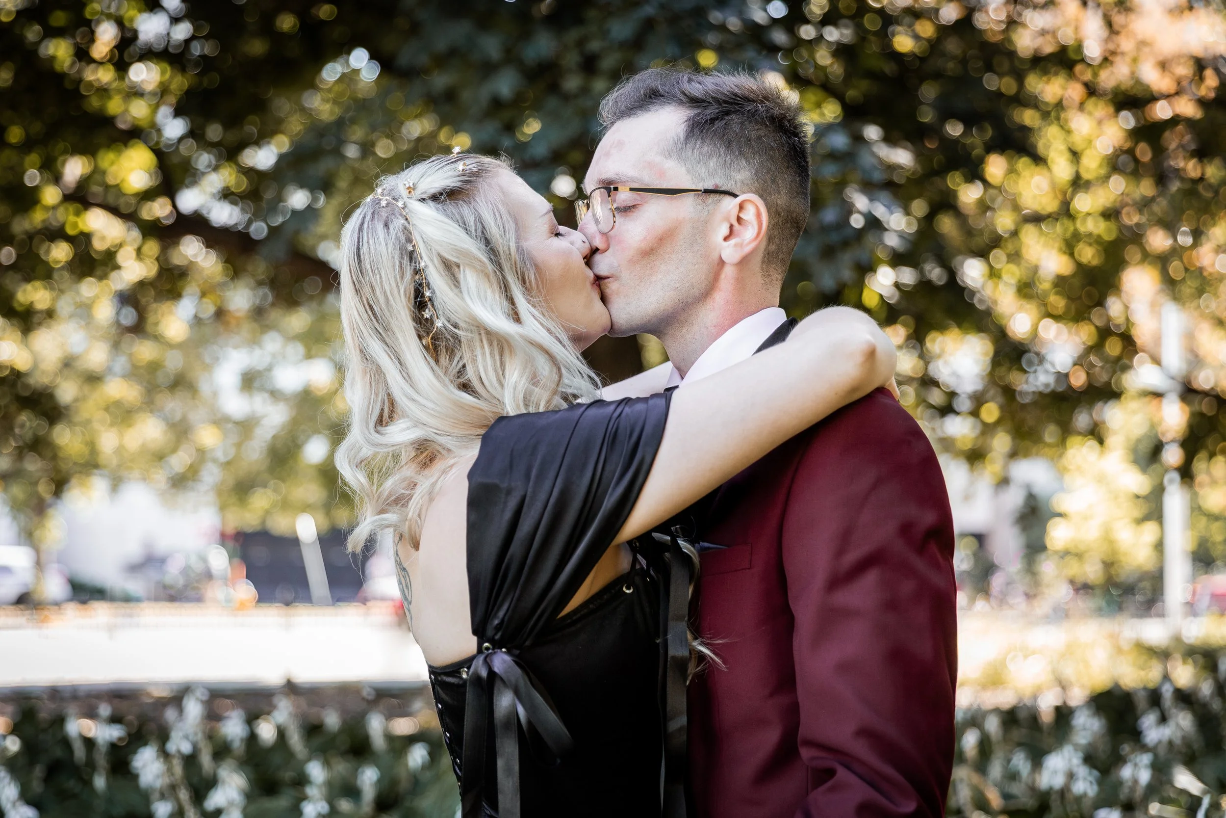 From the very beginning, it was clear that this day would be anything but ordinary. Kat wore a breathtaking black gown with an ethereal, almost elvish quality to it. It was the kind of dress that didn’t just make a statement, it told a story. Paired with her eccentric jewels and velvet starry high heels, the look was both powerful and deeply romantic, redefining what a wedding gown can be.