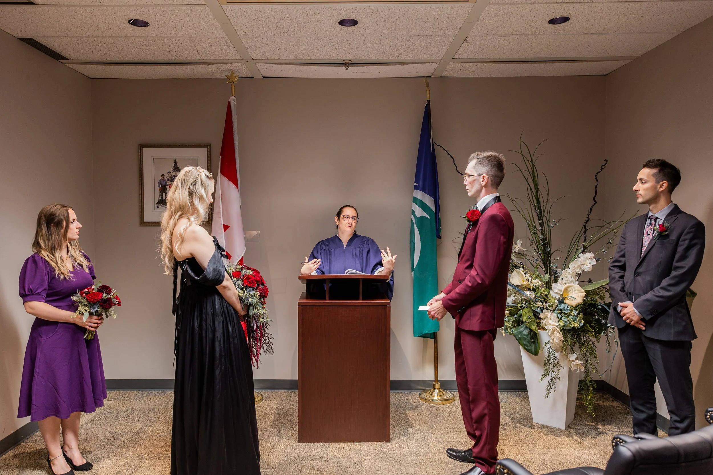 After sharing this treasured moment together, they crossed the street to go tie the knot at Ottawa City Hall, where they were surrounded by their closest loved ones. The ceremony was short and simple, yet deeply personal—the quiet weight of the room shaping a moment that would stay with them forever.
